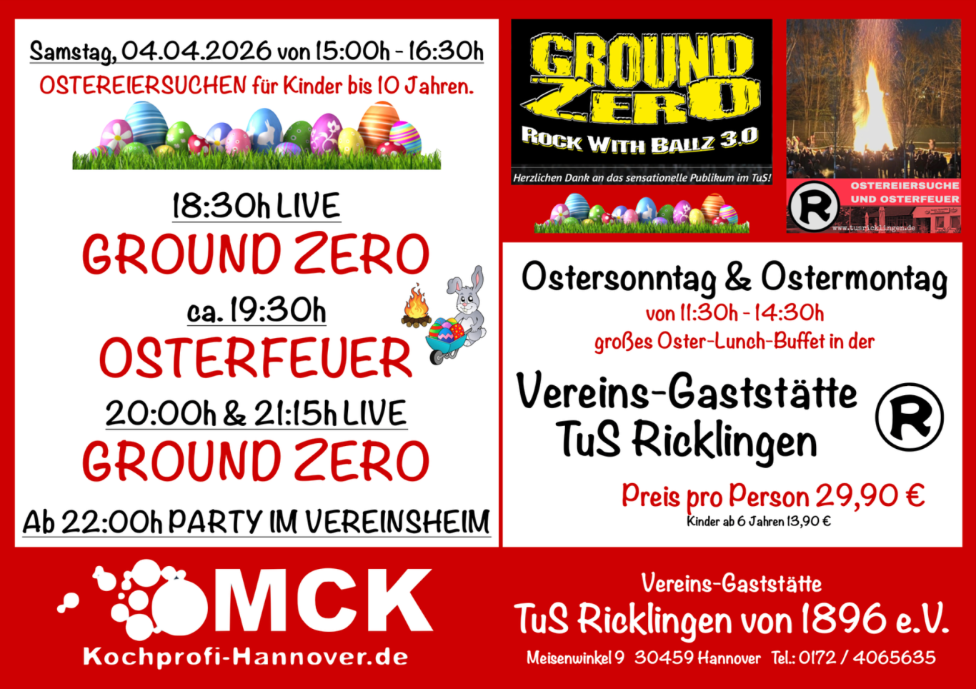 Wir würden uns freuen, euch in der Vereins-Gaststätte des TuS Ricklingen im Meisenwinkel 9 begrüßen zu dürfen.