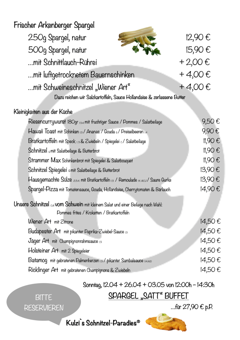 Dienstag - Samstag ab 16:00 Uhr / Sonntag ab 11:00 Uhr